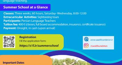 Saadi Foundation offers a three-week Persian Language Teacher Education Program from July 27 to August 16.