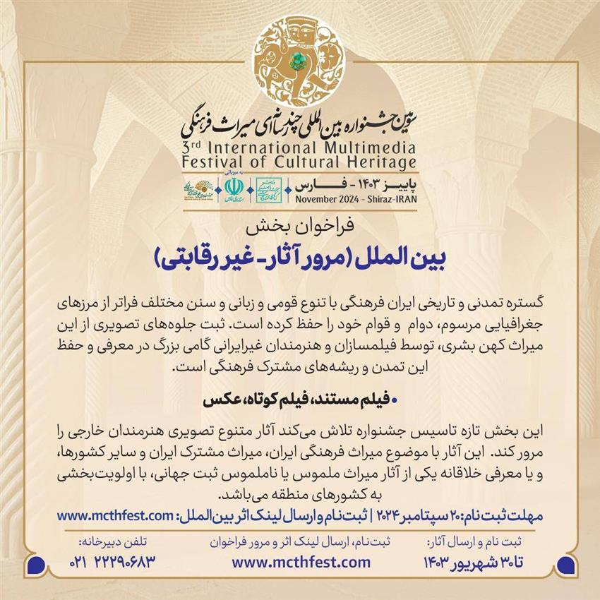 سومین جشنواره بینالمللی چندرسانهای میراث فرهنگی در آبان ماه 1403 در شهر شیراز برگزار میشود.
