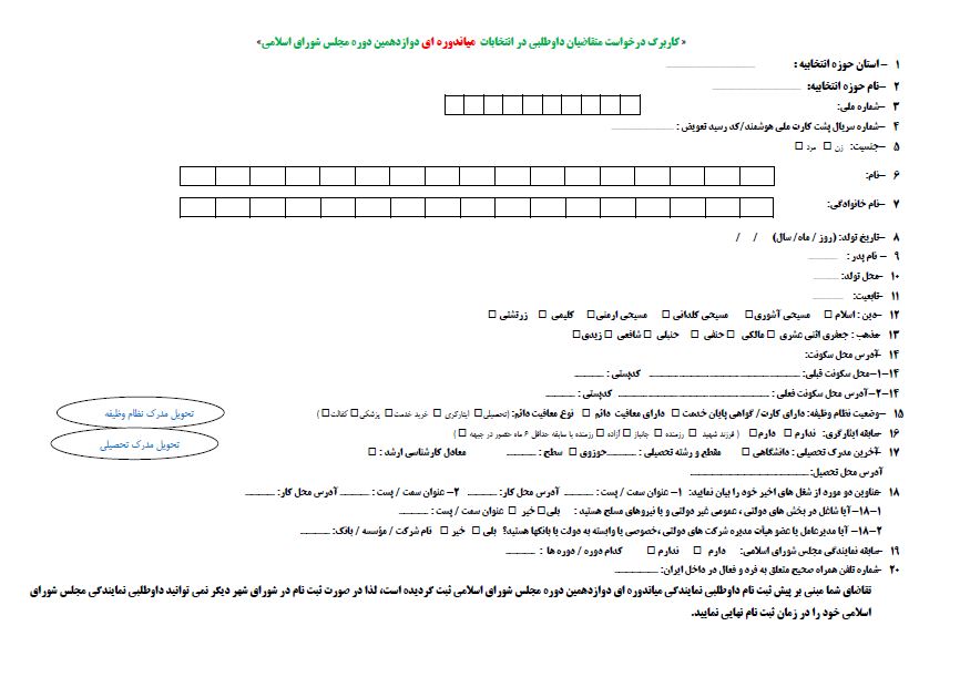 قابل توجه متقاضیان داوطلبی در انتخابات میان دوره ای دوازدهمین دوره مجلس شورای اسلامی