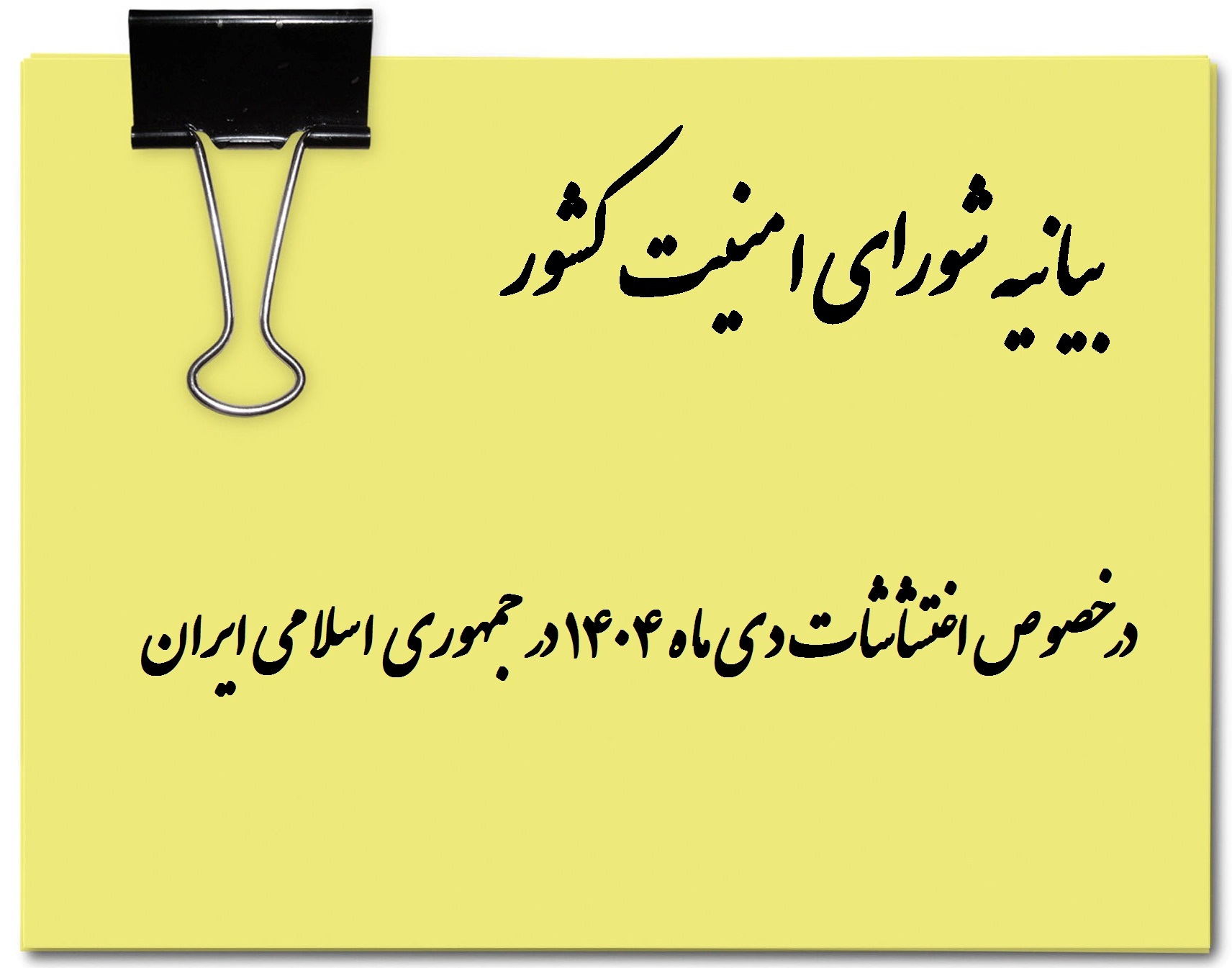 بیانیه شورای امنیت کشور درخصوص اغتشاشات دی ماه ١۴٠۴ در جمهوری اسلامی ایران